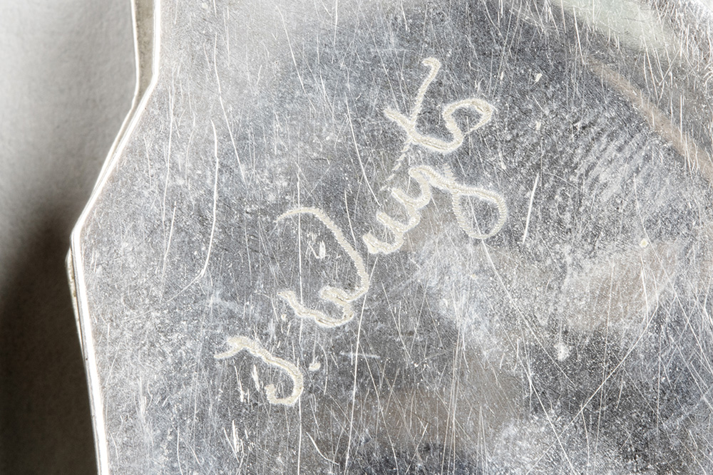 Belgian eighties’ design necklace in silver with an three pearls – signed J. Wuyts