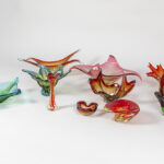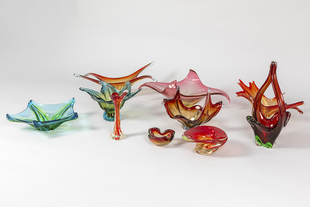10 pieces of Italian Muranoglass with imbedded colors in clear glass