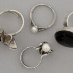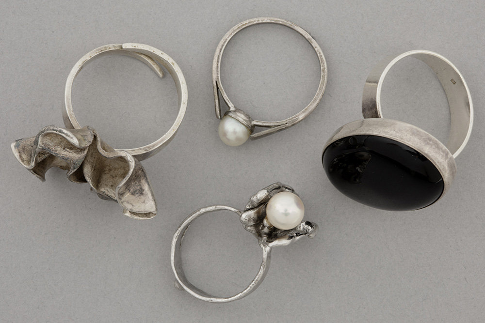 Lot (4) van drie designringen in zilver en een ring met een parel