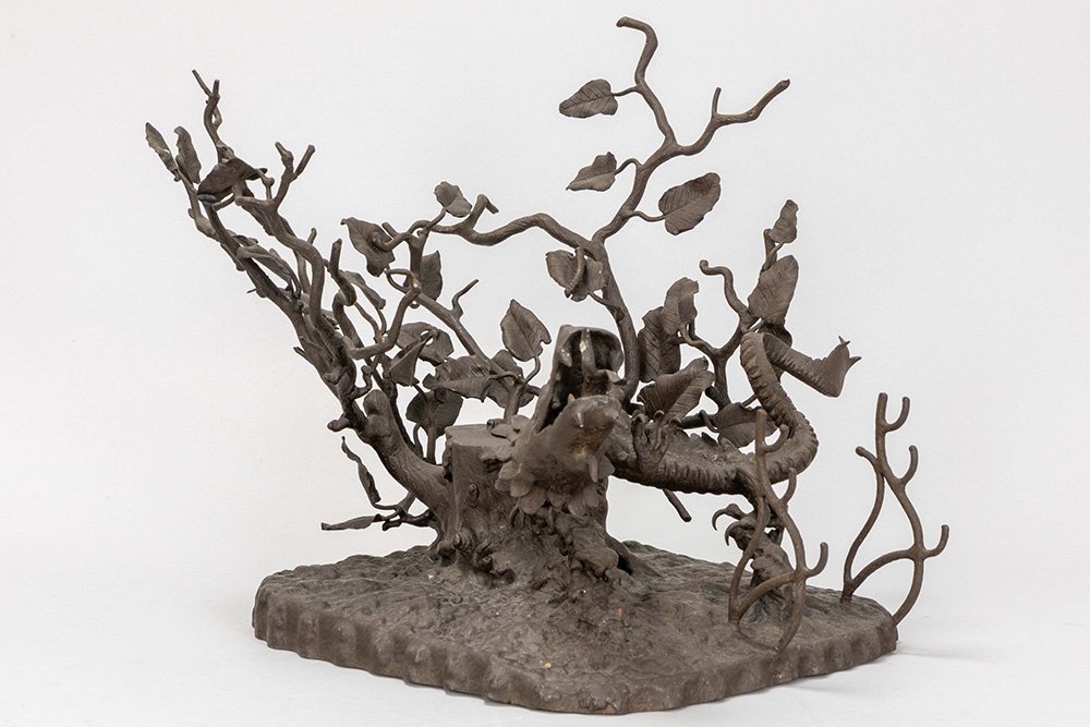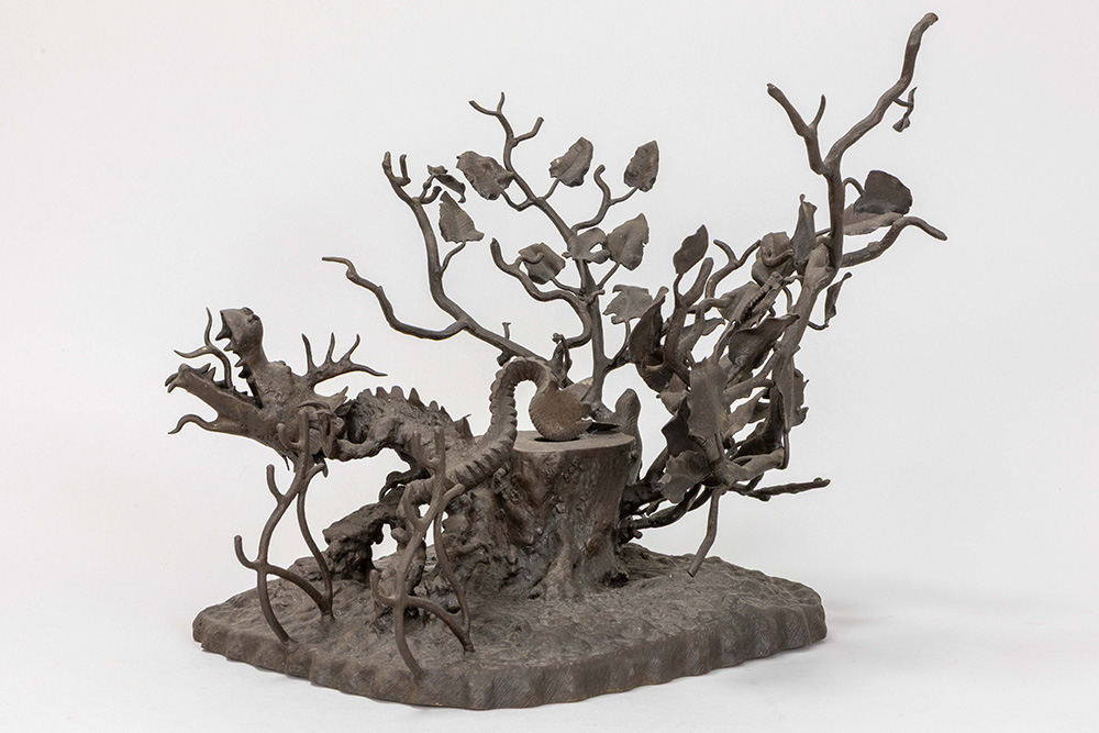 GUILLAUME VLIEGHE (1895 – 1978) (werkzaam in Sint-Gillis Dendermonde) meesterwerk van de jaren ’20 in smeedijzer : inktpot met draak – 36 x 37 x 30 prov : rechtstreeks uit de familie