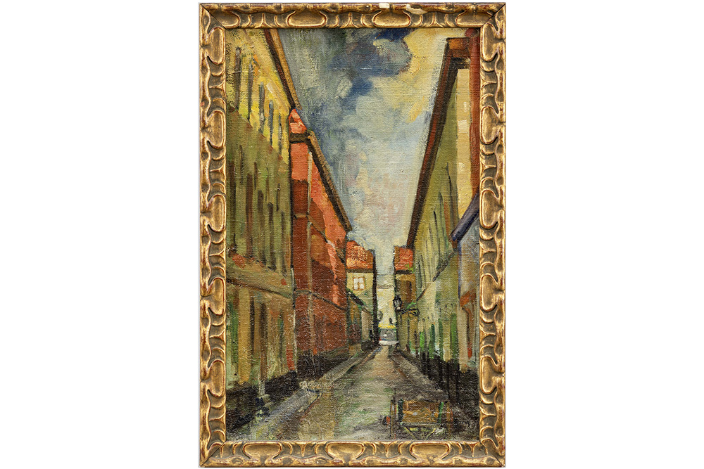 NUYTTENS olieverfschilderij op paneel : “Straatzicht” – 60 x 37 getekend en gedateerd 1930