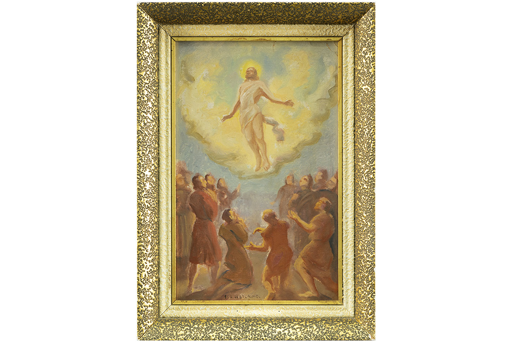 Olieverfschilderij op paneel naar een werk van Eugène Delacroix : “Hemelvaart van Christus” – 35 x 22,5