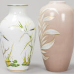 Twee vazen in faïence, één gemerkt ‘Chiemse Heindrich’ en één ‘Franklin’ – hoogtes : 29 en 31 cm