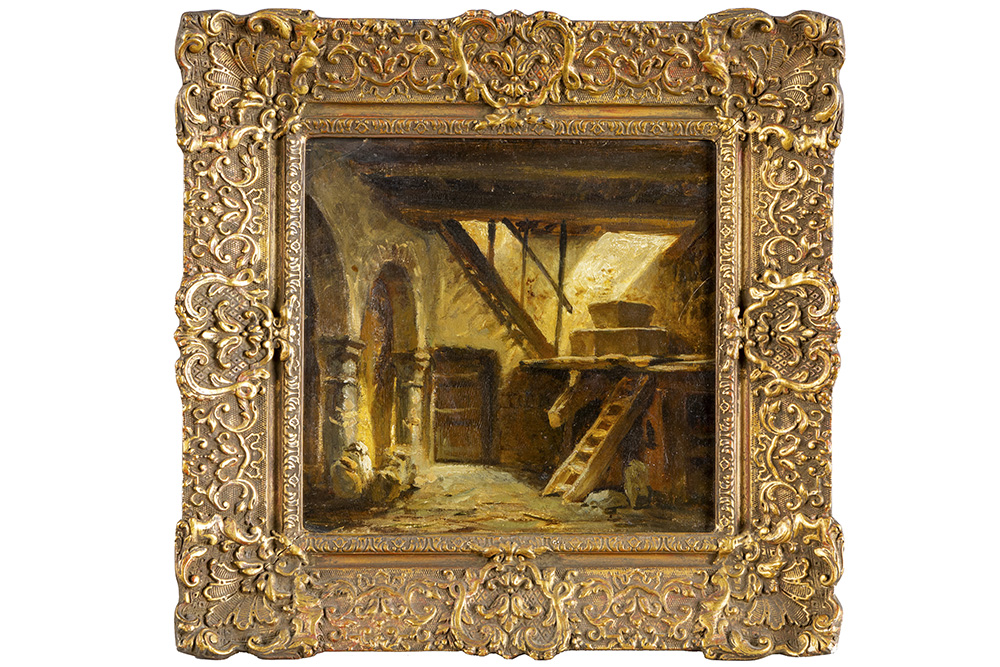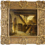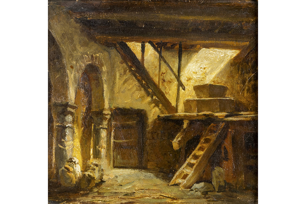 DE BRAEKELEER HENRI (1840 – 1888) olieverfschilderij op paneel : “Zicht van een trap” – 26 x 27,5 toegeschreven aan