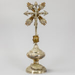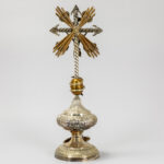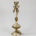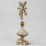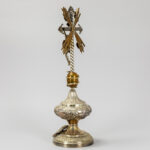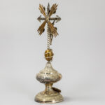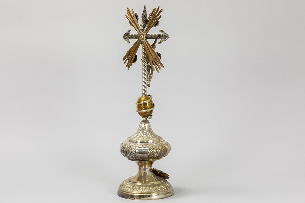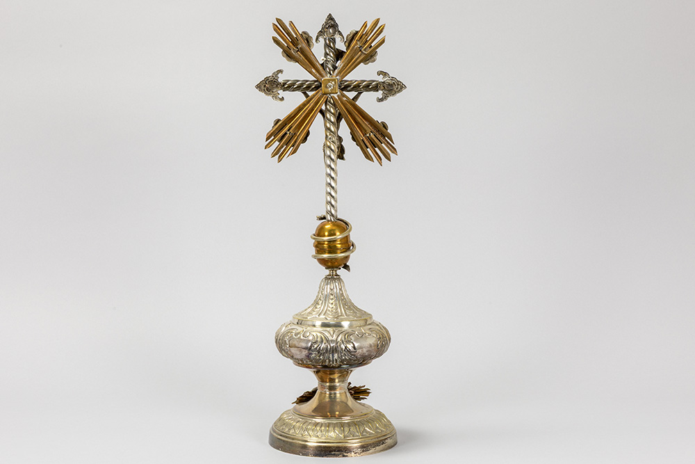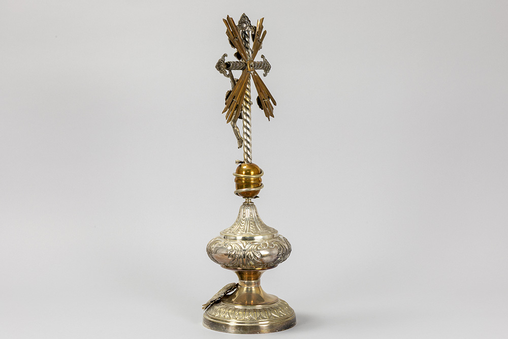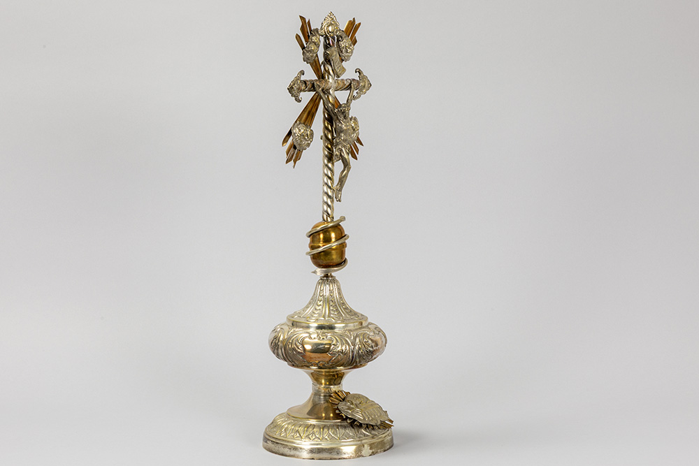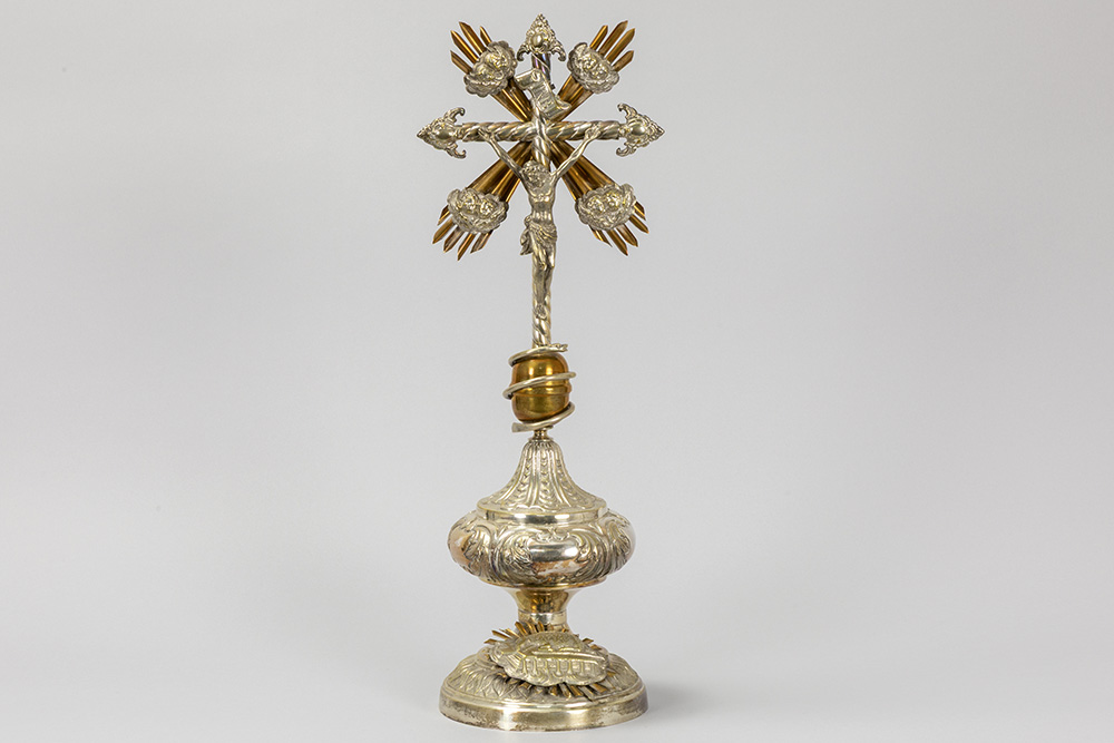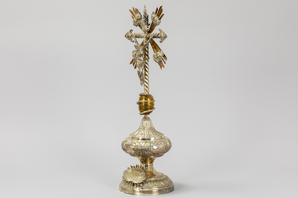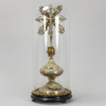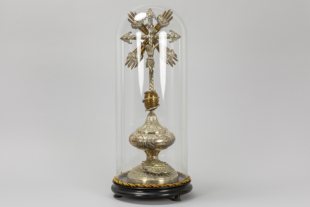 antique crucifix, partly in silverplated brass – under a globe