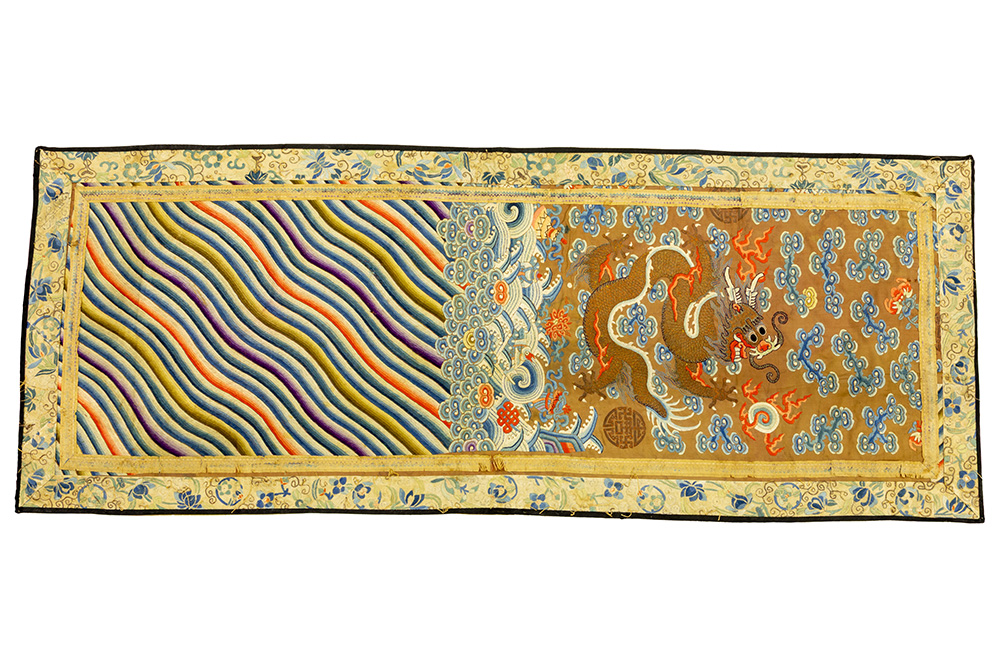 piece of antique Chinese Qing period textile in silk on silk with a dragon decor
