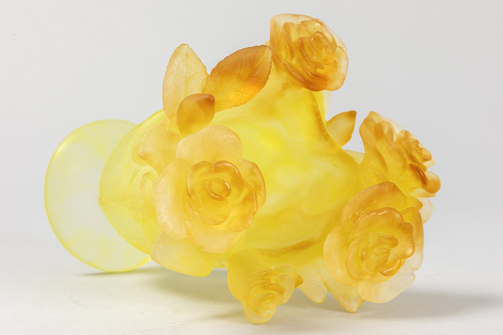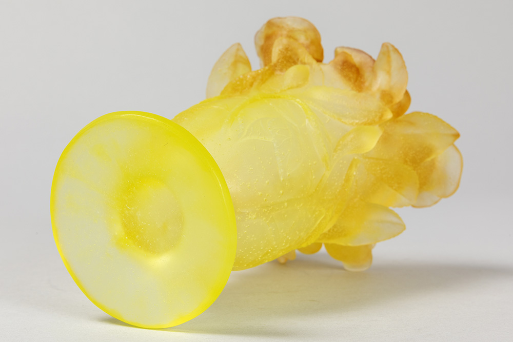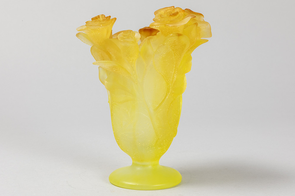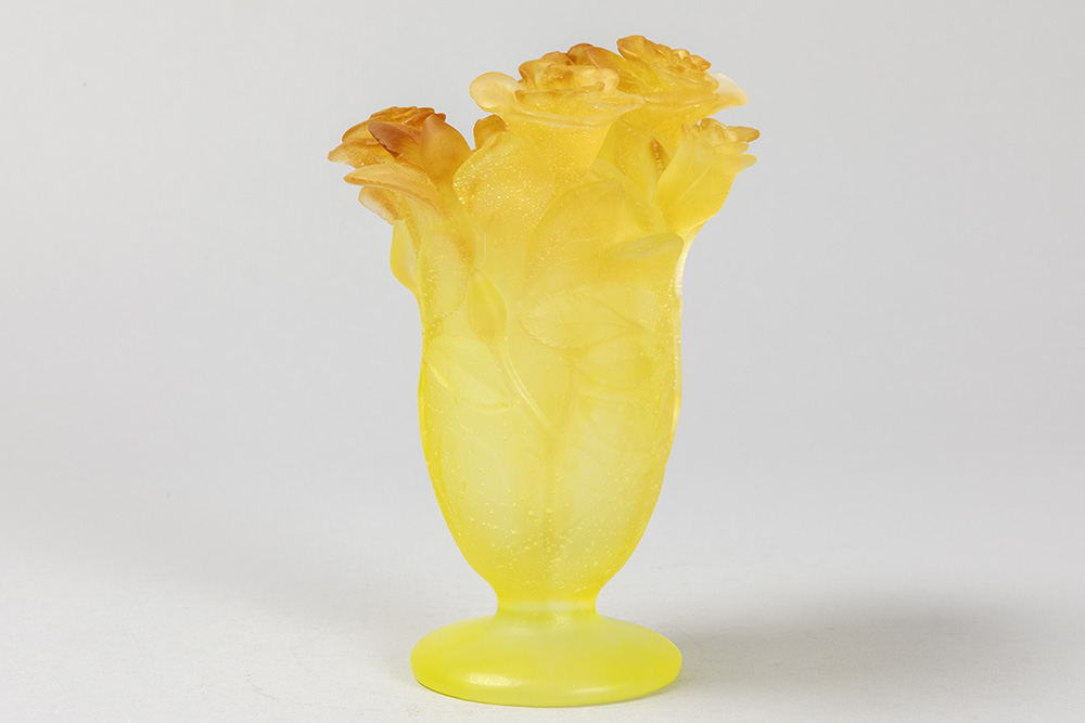 DAUM FRANCE vaas met bloemenkraag in glaspasta – hoogte : 18 cm getekend