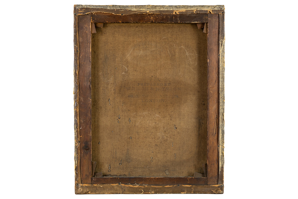 Onleesbaar getekend olieverfschilderij op doek : “Hoofd van Jezus aan het kruis” – 50 x 40 het doek is Engels gemerkt