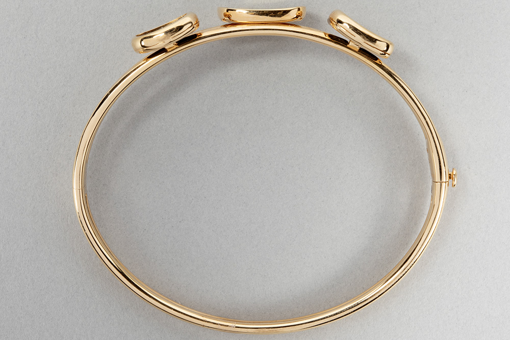 Roberto Coin signed bracelet in pink gold (18 carat) with three medallions of which two have an onyx plaque and one ca 0,50 carat of high quality brilliant cut diamonds