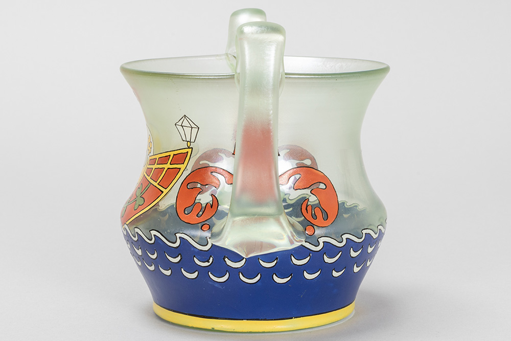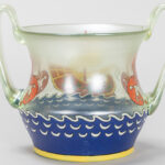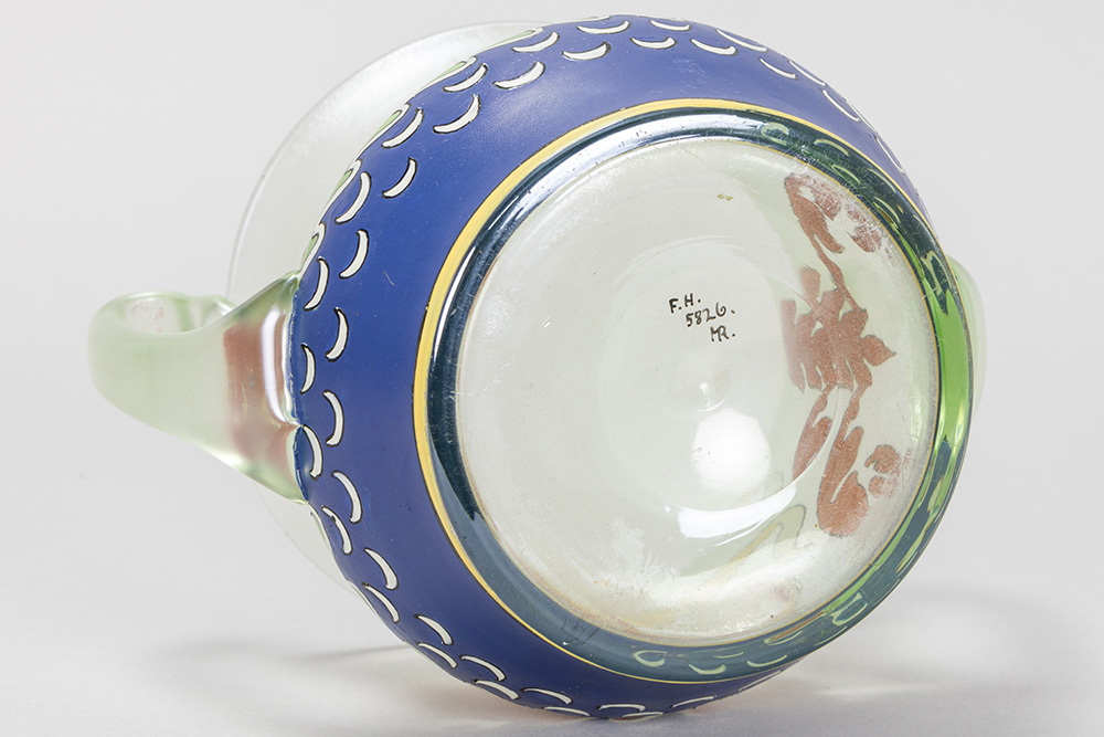 MAX RADE (1840 – 1917) voor FRITZ HECKERT museale ‘Goldcypern’ vaas in kristal met polychrome email – te dateren circa 1899 – hoogte :12,5 cm gemerkt ‘MR’ en ‘FH’ ref : gelijkaardige vaas in het Glasmuseum Passau, Duitsland