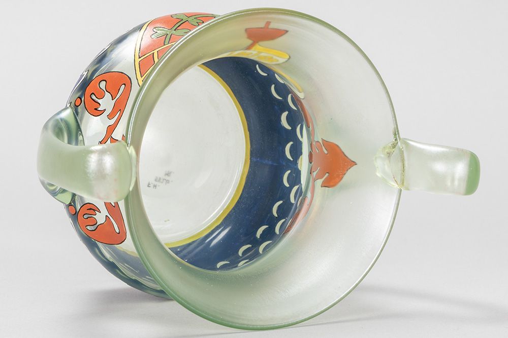 Max Rade for Fritz Heckert museum quality ‘Goldcypern’ vase in crystal with polychrome enamels – to be dated around 1899 – marked ‘MR’ and ‘FH’ ref : similar vase in the Glasmuseum Passau, Germany