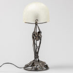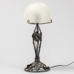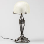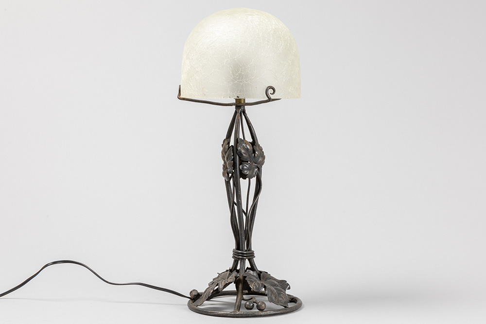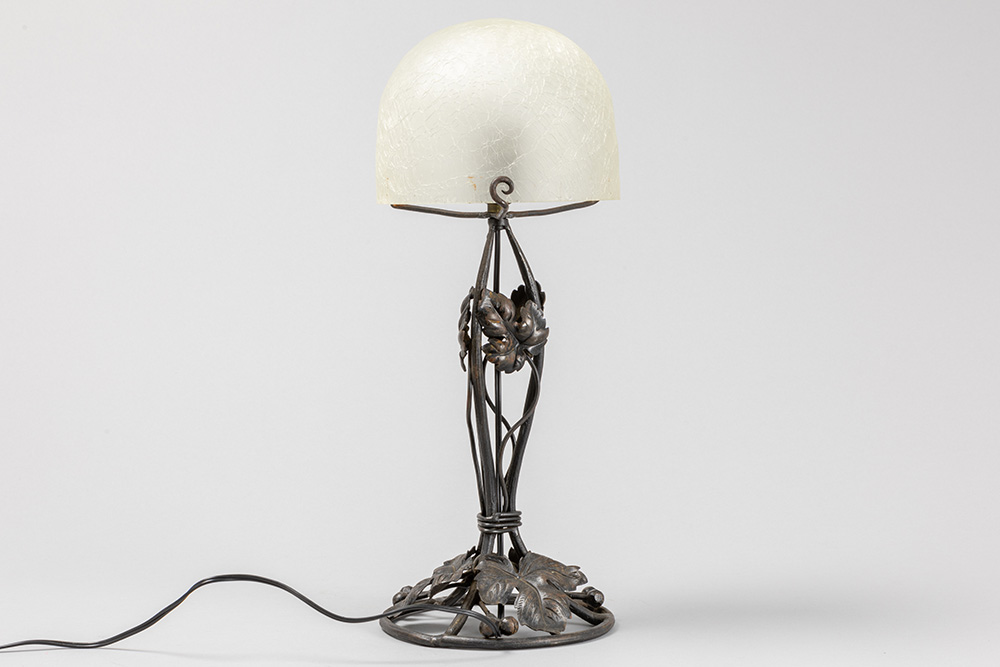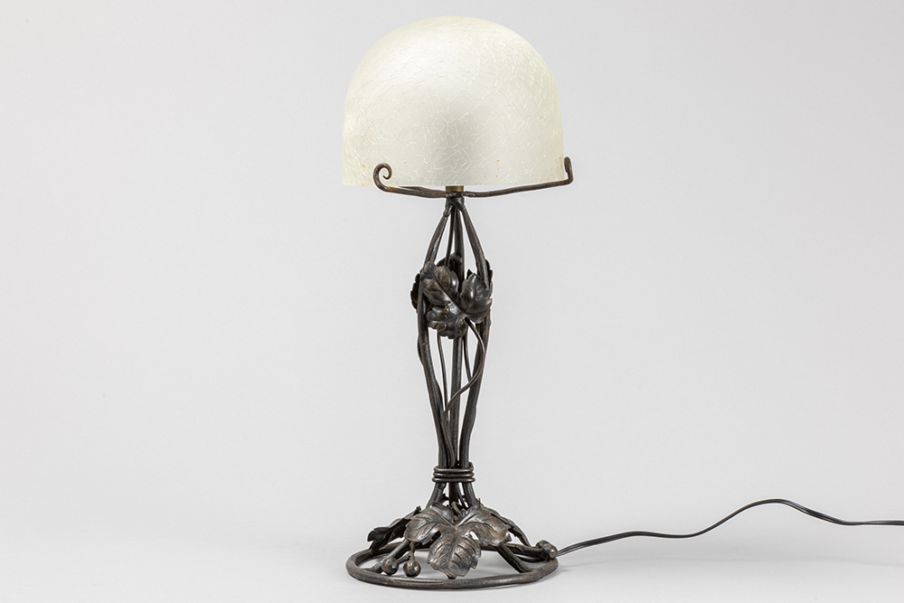 Art Deco lamp in wrought iron and frosted glass