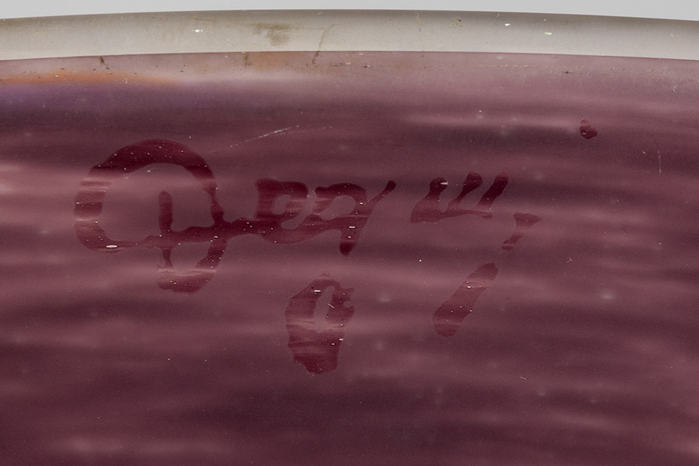 Degué signed Art Deco lamp with a nice base in wrought iron and a bowl in pâte de verre