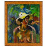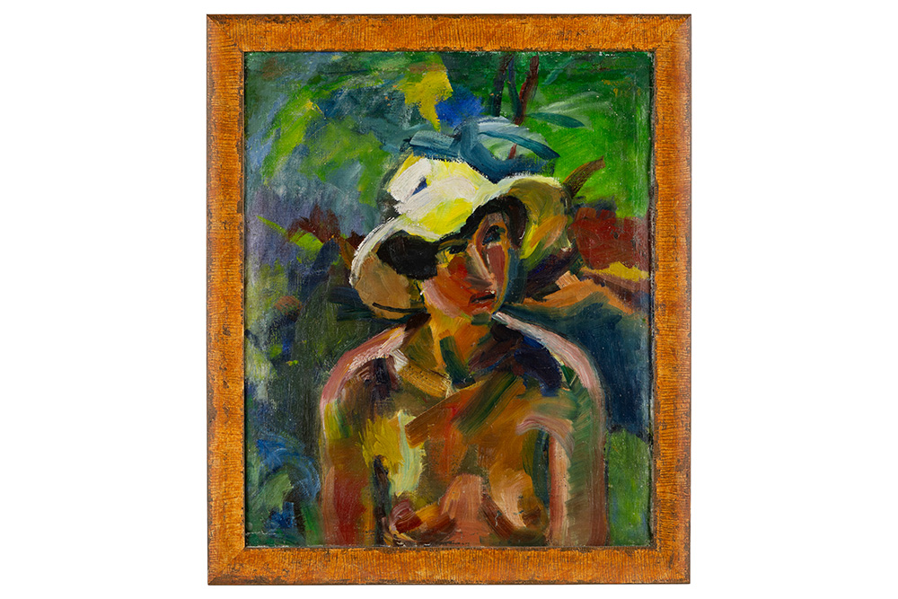 NOVOTNY EMIL RÖBERT (1898 – 1975) dubbelzijdig olieverfschilderij op doek : “Vrouw met hoed” en “Landschap” – 65,5 x 55,5 getekend en ook getekend op de kant van het landschap