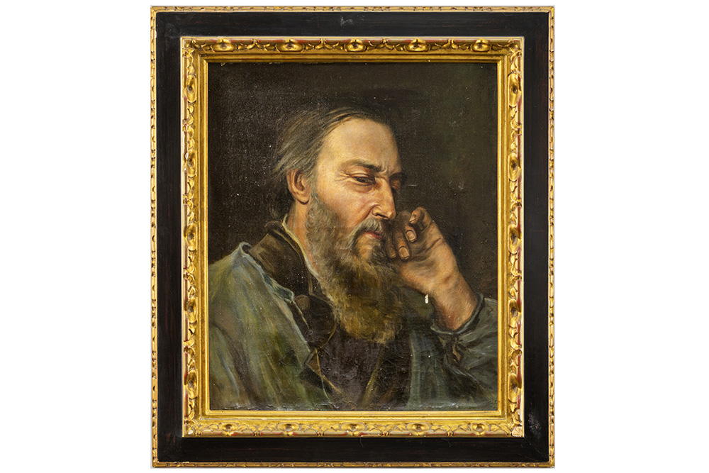 REPIN ILYA EFIMOVICH (1844 – 1930) – OMGEVING VAN olieverfschilderij op doek met een typische karakterkop : “Mansportret” – 54 x 46