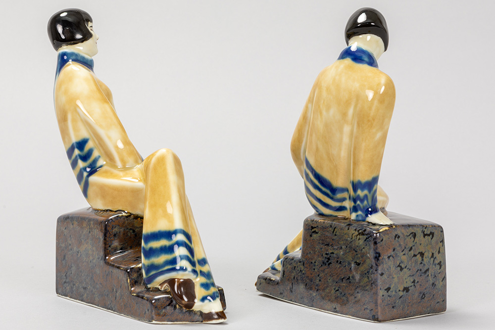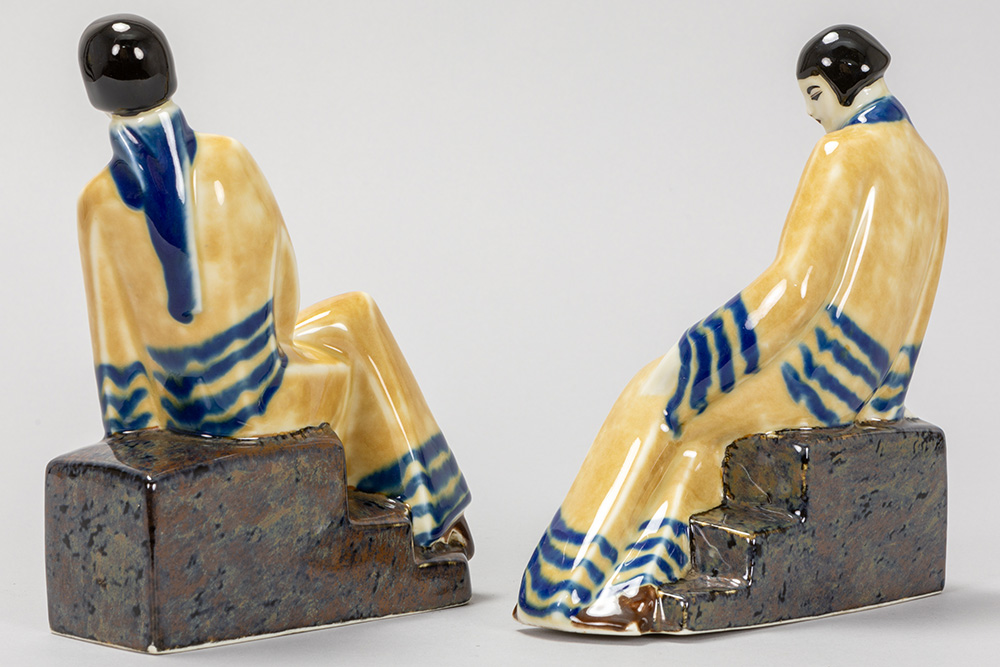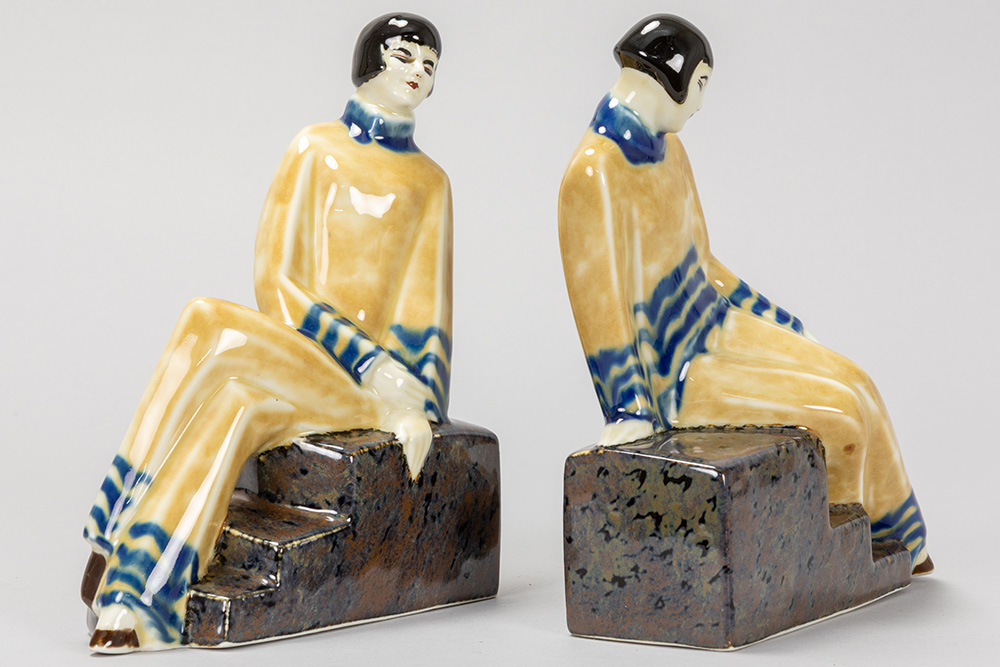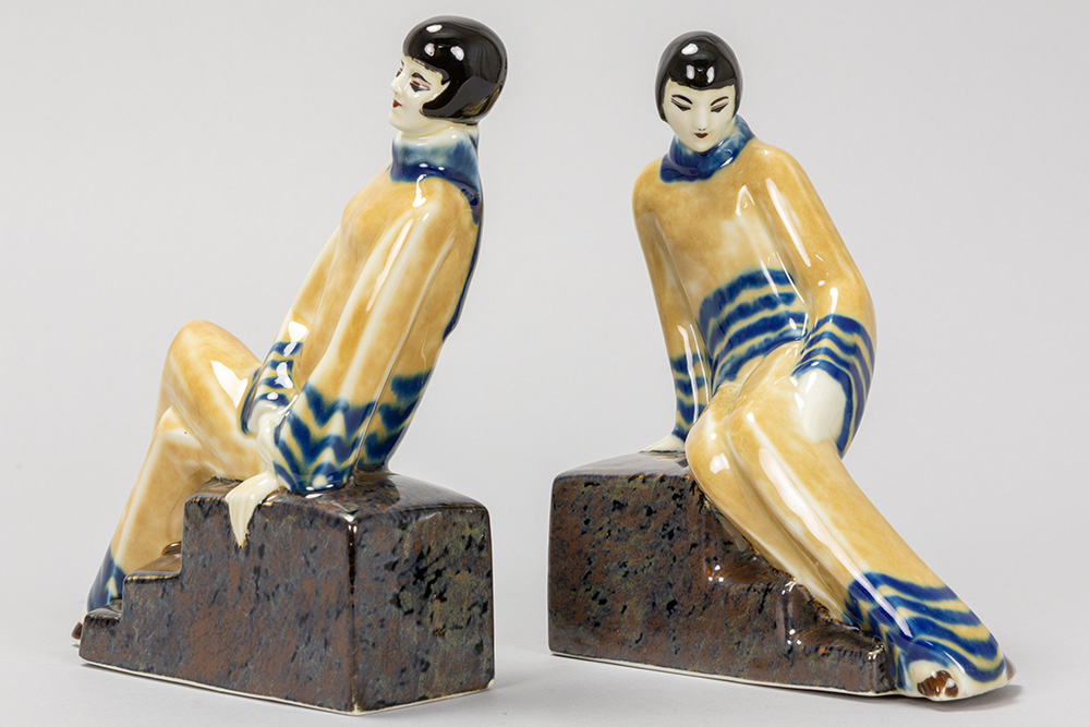 rare pair of Camille Tharaud signed Art Deco book-ends in Limoges marked porcelain