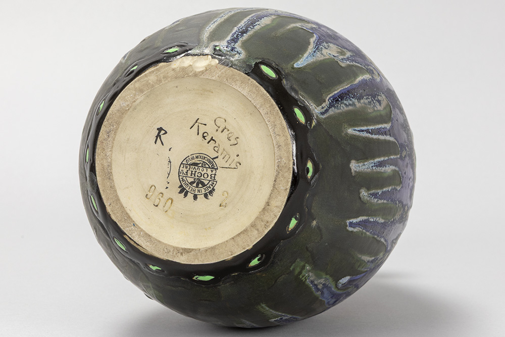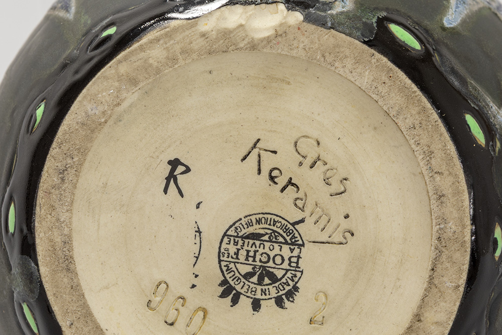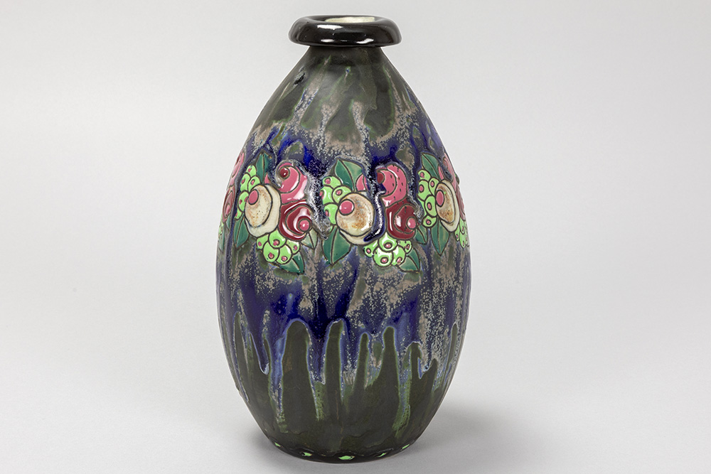 Charles Catteau Art Deco vase in Keramis marked earthenware with a polychrome floral decor