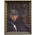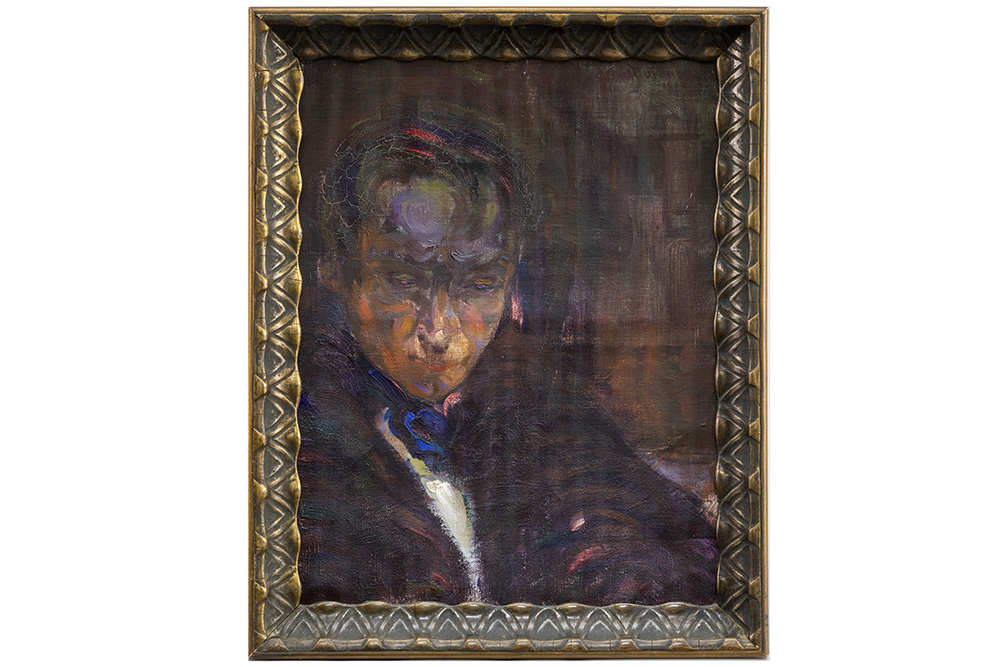 Onleesbaar getekend olieverfschilderij op doek met een thema in symbolistische stijl : “Mijmerende vrouw” – 46,5 x 35,5 gedateerd 1922