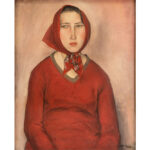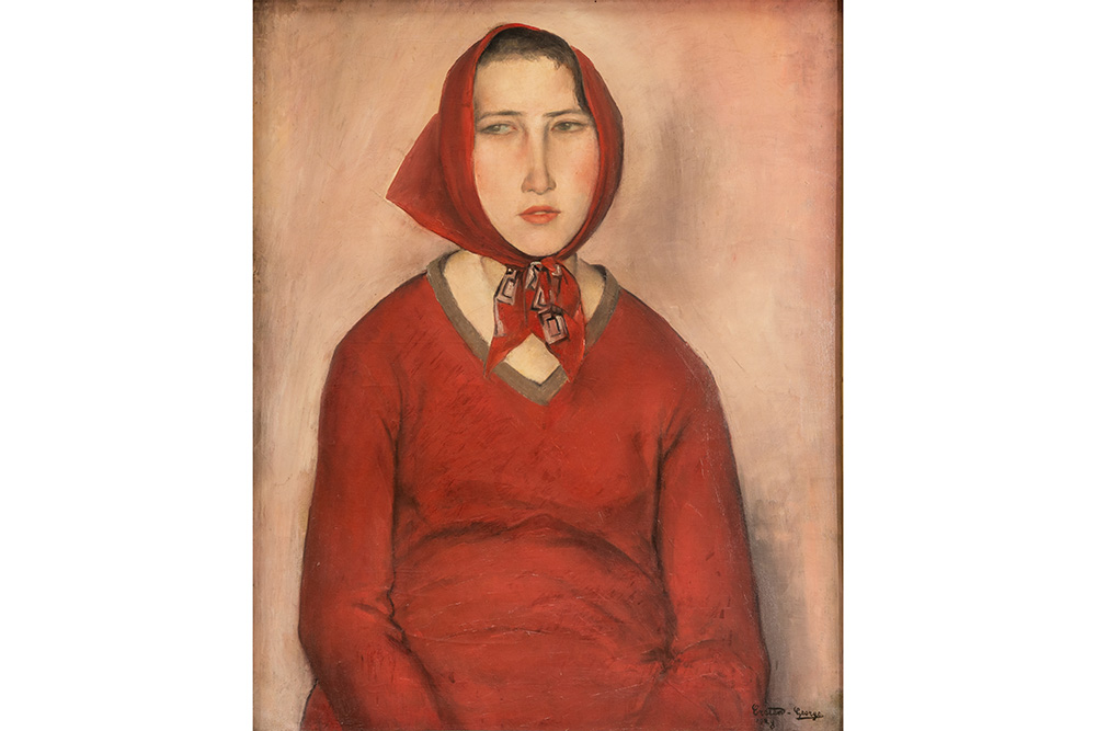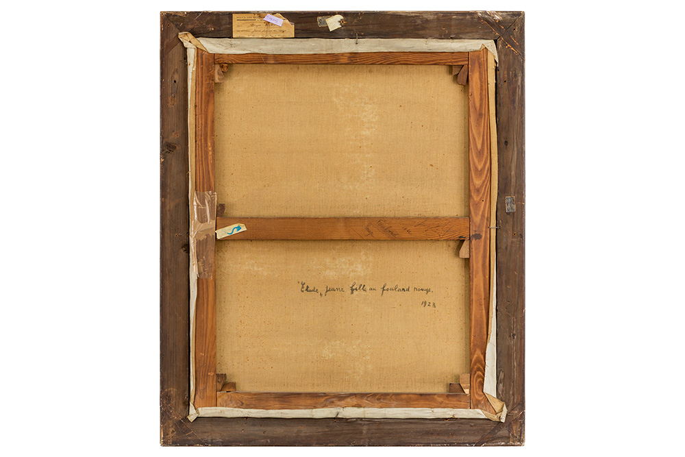 CRETEN – GEORGE (1887 – 1966) olieverfschilderij op doek, getiteld op verso : “Jeune fille au foulard rouge” – 80 x 65 getekend en gedateerd 1928