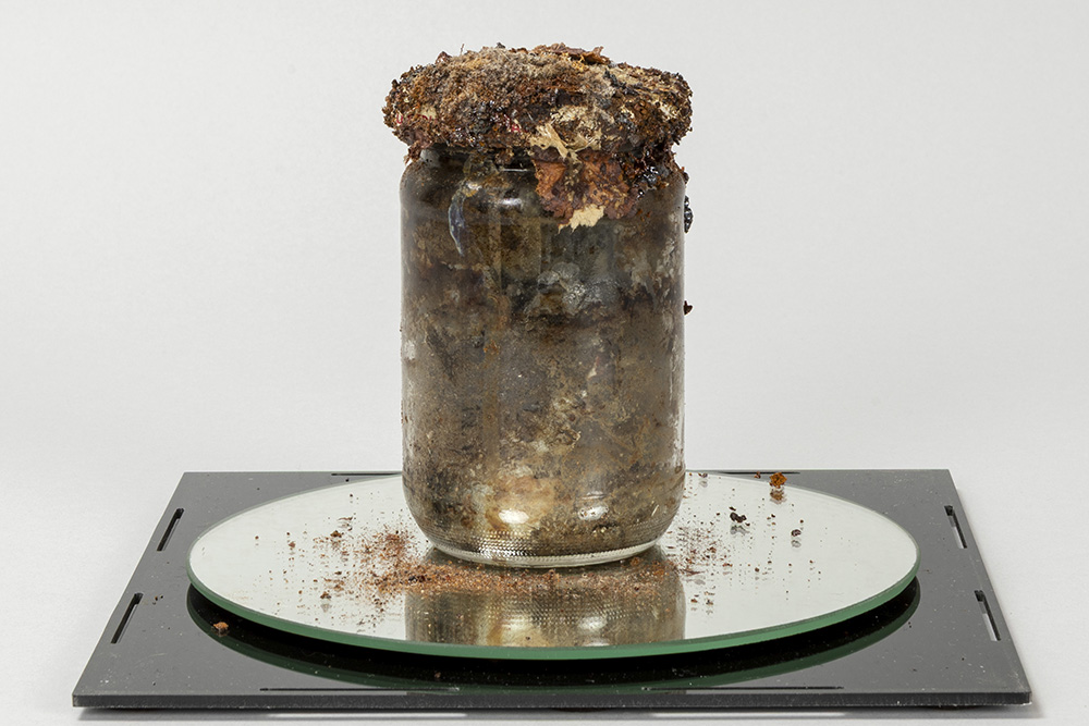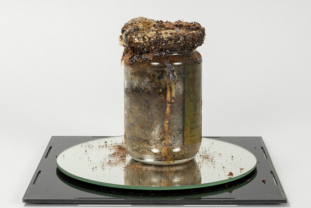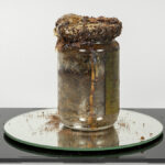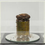 Daniel Spoerri signed and 1968 dated mixed media object (glass, herring, paper, plastic) titled “Attention Art Work” – numbered 211 edition by Vice-Versand This work by Spoerri, for whom food is an important theme in his oeuvre, can be framed in his “Eat Art” concept. In 1963 he held a kind of performance at the Restaurant de la Galerie J in Paris where he cooked several evenings and he opened a restaurant in Düsseldorf on 6/18/68, above which he opened an “Eat Art” gallery in 1970
