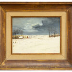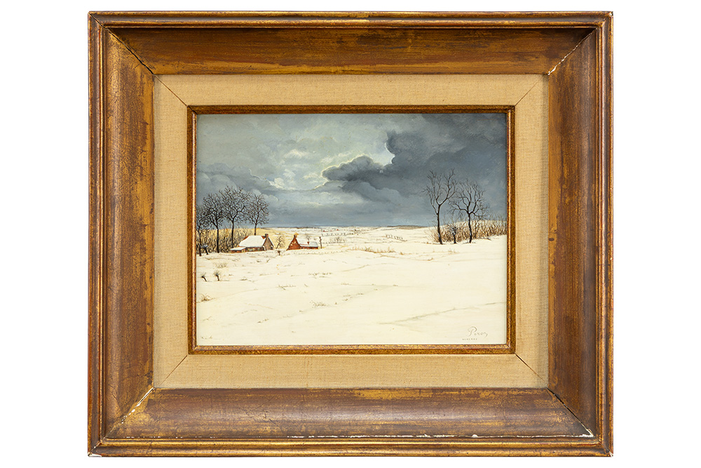 PIRON LEO (1899 – 1962) olieverfschilderij op paneel : “Sneeuwlandschap te Nukerke” – 30 x 40 getekend