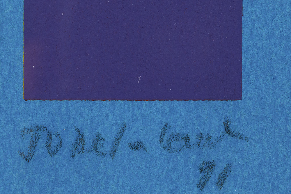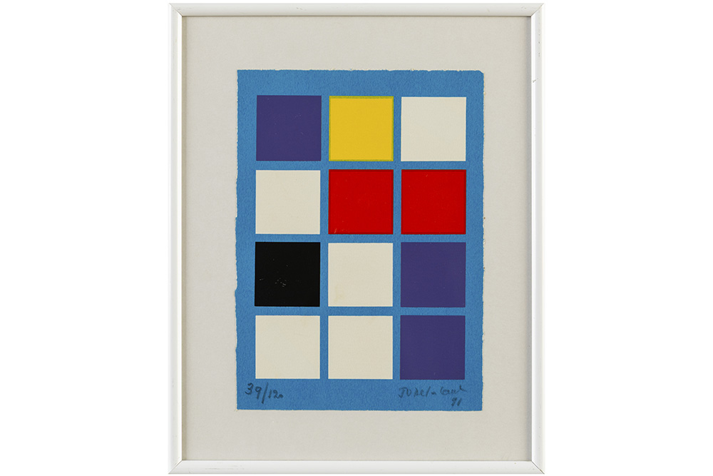 DELAHAUT JO (1911 – 1992) zeefdruk in kleuren n° 39/120 : “12 vierkanten” – 21 x 15 getekend en gedateerd ’91