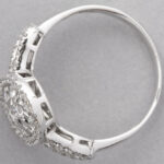Ring in witgoud (18 karaat) met een ovaal geajoureerd sierstuk bezet met ca 0,90 karaat witte (E/F/G) kwaliteitsbriljant (Vvs/Vs)
