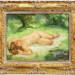 BALENGHIEN GUSTAVE (1892 – 1953) olieverfschilderij op paneel : “Vrouwelijk naakt liggend in de natuur” – 26 x 34 getekend
