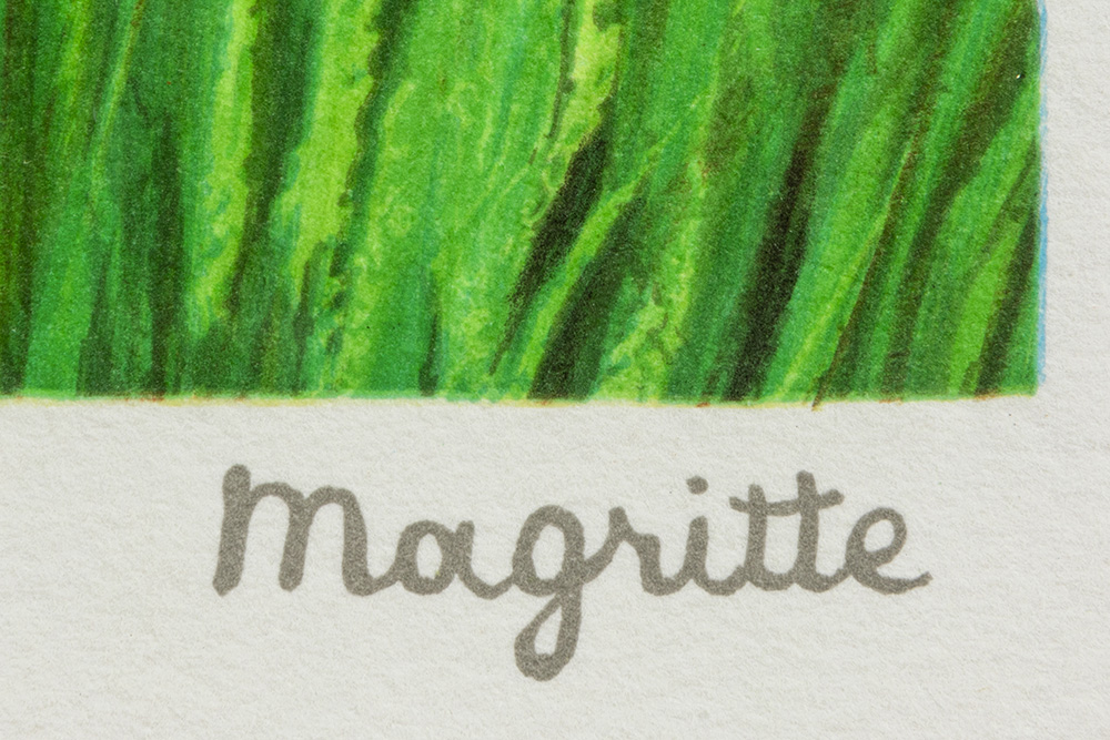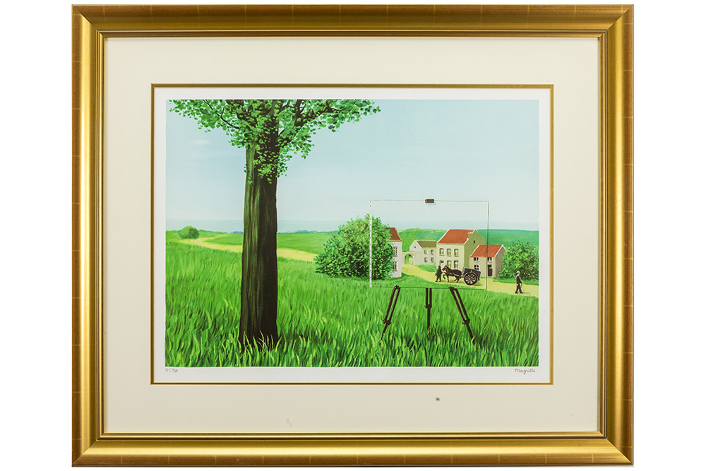 MAGRITTE RENÉ (1898 – 1967) print n° 11/45 naar Magritte’s werk uit 1931 getiteld “La Belle Captive” – 50 x 70 genaamstempeld