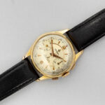 VERDAL vintage chrono polshorloge in goud op staal met lederen band gemerkt