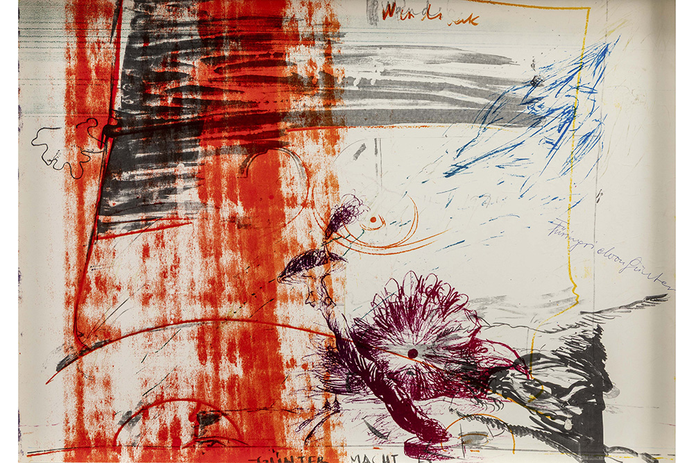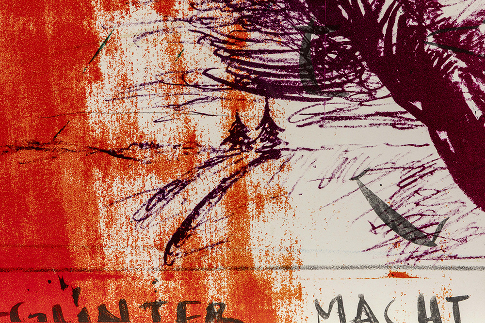 Günther Brus signed mixed media on a screenprint titled “Günther macht es”