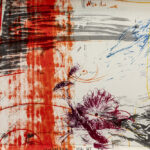 BRUS GÜNTHER (1938 – 2024) werk in gemengde techniek (bewerkte zeefdruk) met een geabstraheerde compositie : “Günther macht es” – 59 x 83 getekend