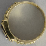 Mansring in geelgoud (18 karaat) met als sierstuk een Rolex-kroontje, bezet met saffier – gewicht : 4,5 gram