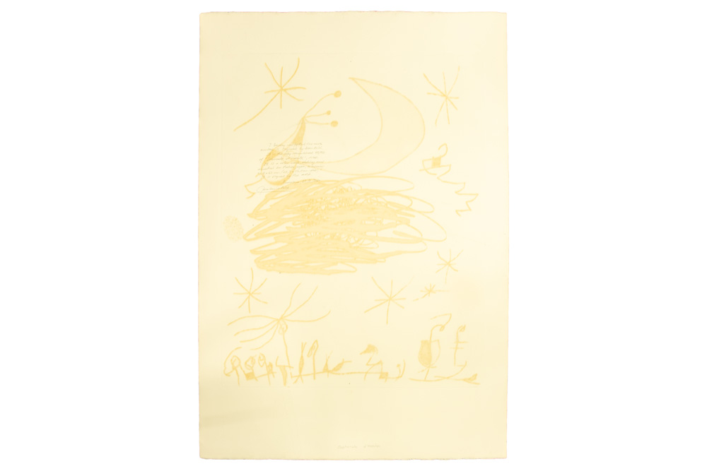 MIRO JOAN (1893 – 1983) ets en aquatint in kleur n° 48/50 met een typische compositie getiteld : “Saturnale d’Insectes” – 68,3 x 53,6 (blad : 92 x 63,2) getekend en met op verso een in potlood geschreven certificaat
