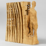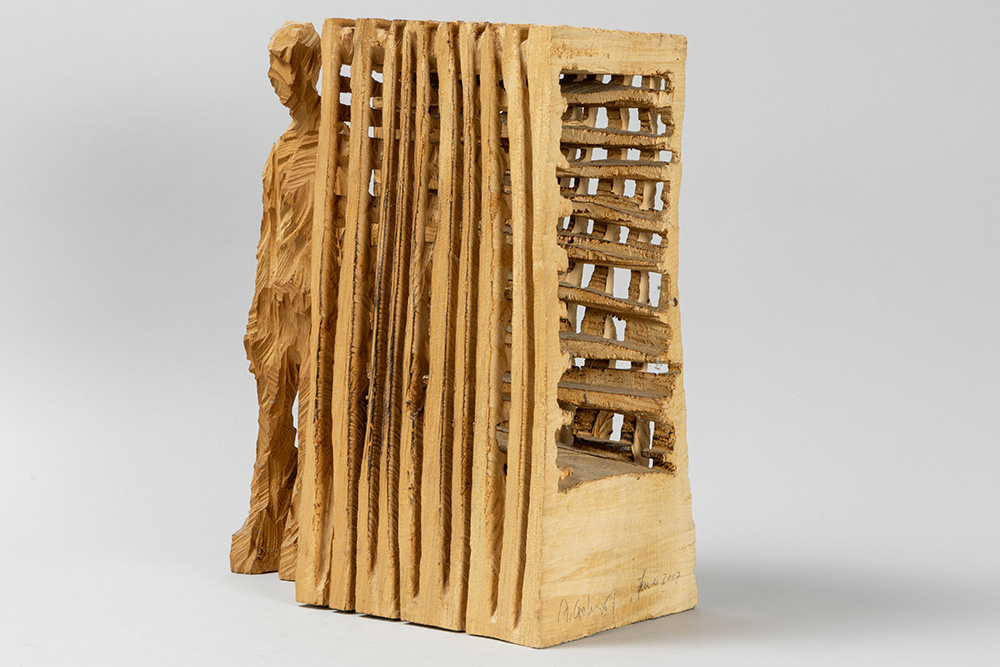 GÖHRINGER ARMIN (° 1954) sculptuur in hout : “Compositie met figuur” – hoogte : 37,5 cm getekend en gedateerd 2007 wordt verkocht met enkele boeken, waarvan één gededicaceerd, ivm zijn oeuvre