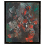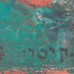 Onleesbaar getekend (in het Hebreeuws) olieverfschilderij op doek met een abstracte compositie – 55 x 46 gedateerd (19)67