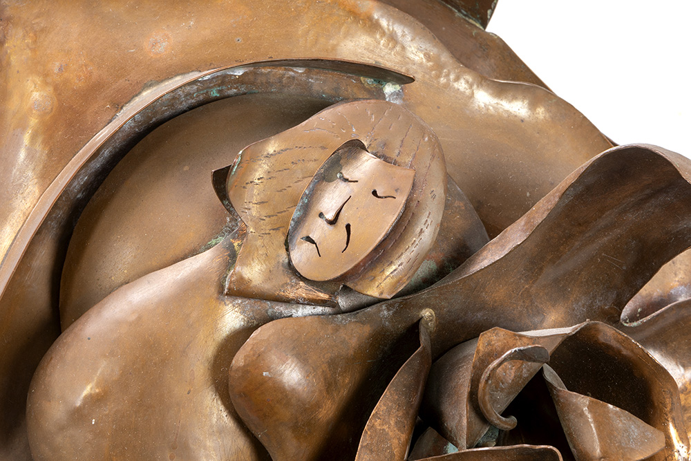 20th Cent. Belgian abstract wall sculpture in red brass by Joris Minne prov : De Vuyst, Lokeren, BE (with label in the back)