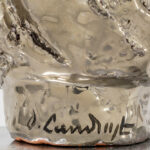 Octave Landuyt signed ceramic sculpture on a chromed metal base
