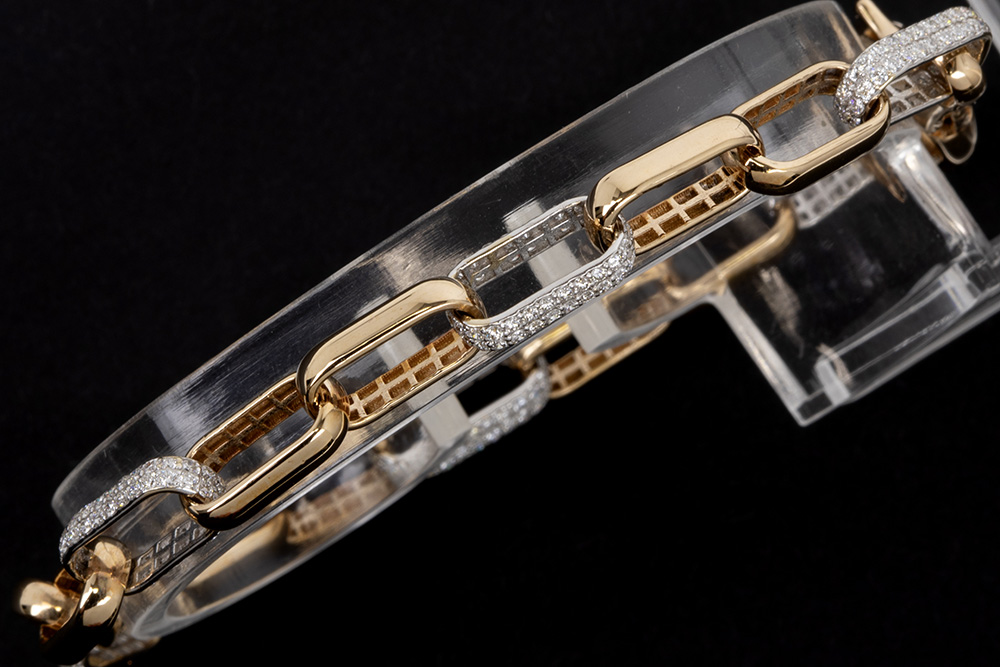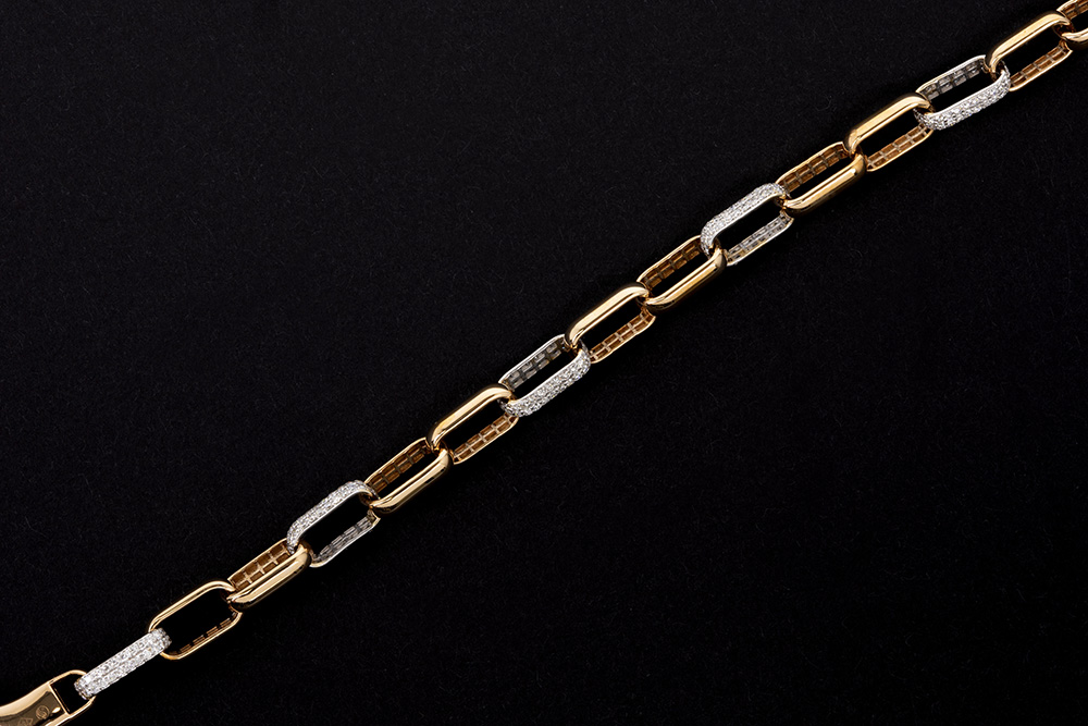 bracelet with links in pink and white gold (18 carat) and with 2 carat of very high quality brilliant cut diamonds