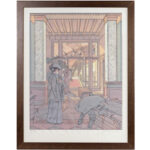 François Schuiten signed double work dd 2004 with black print on tracing paper and a color print n° 02/82, created in collaboration with Louis Vuitton and titled “Le monde du voyage Louis Vuitton”