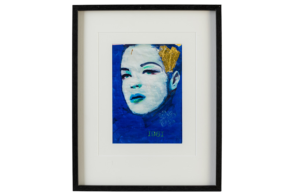 VERTESSEN LILIANE (° 1952) print met goudblad : “Zelfportret” – 30 x 20 getekend op verso
