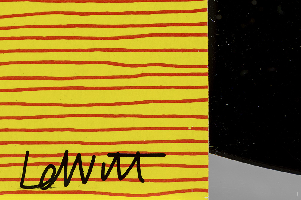 SOL LEWITT (1928 – 2007) LP cover voor het album van Philip Glase “Music in Twelve” dd 1988 – met elpee en plexi showcase (36 x 56 cm) getekend