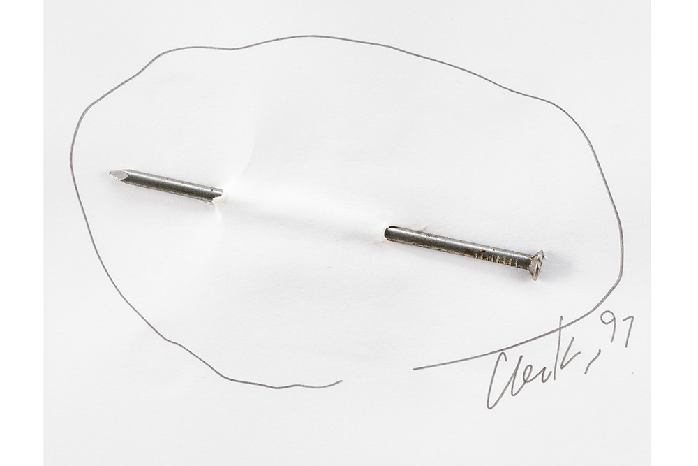 UECKER GÜNTHER (1930 – 2025) origineel werk met een spijker door een papier met een tekening in potlood – 12,5 x 16 getekend en gedateerd 1997