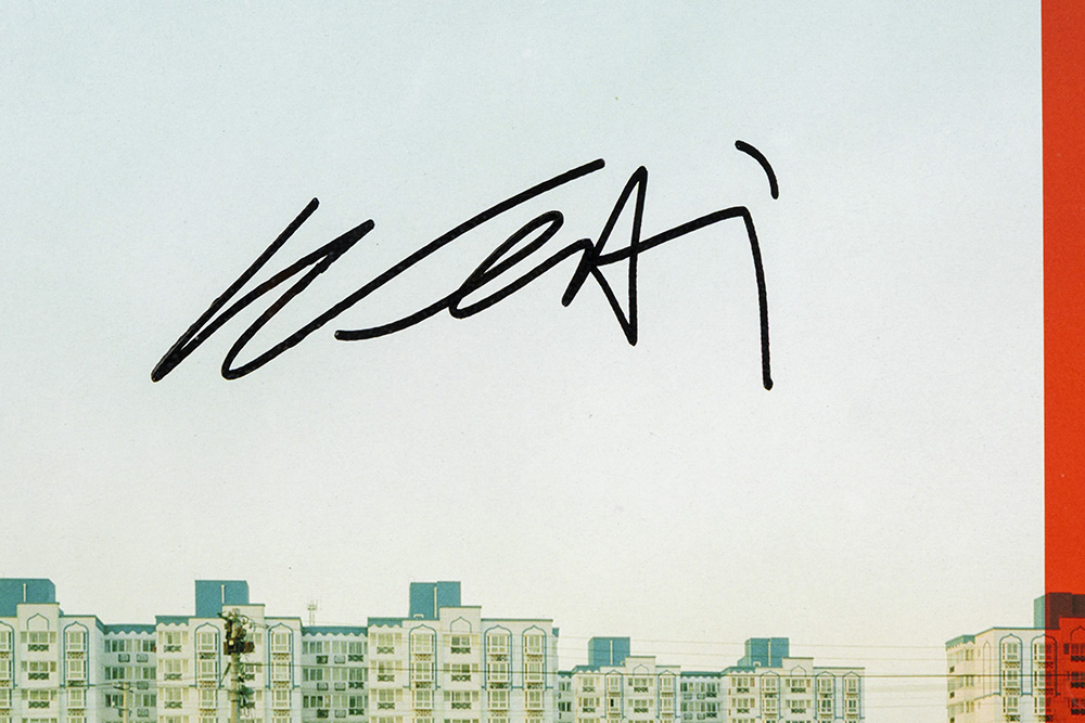 AI WEIWEI (° 1957) LP cover van “Day & Taxi : Live in Shenzhen, Shangai and Tapei” met foto van Ai Weiwei – met elpee en plexi showcase (36 x 56 cm) getekend