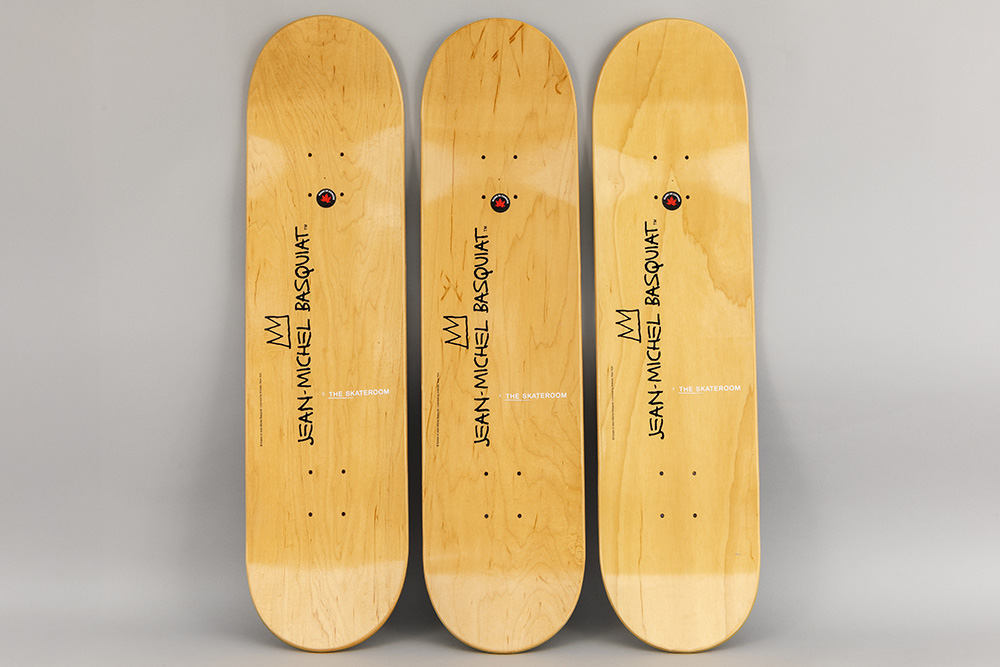 series of three skateboards with plate signed screenprints of works by Jean-Michel Basquiat Licensed by Artestar – New York in collaboration with the Estate