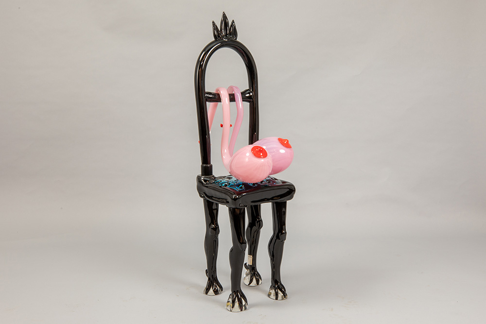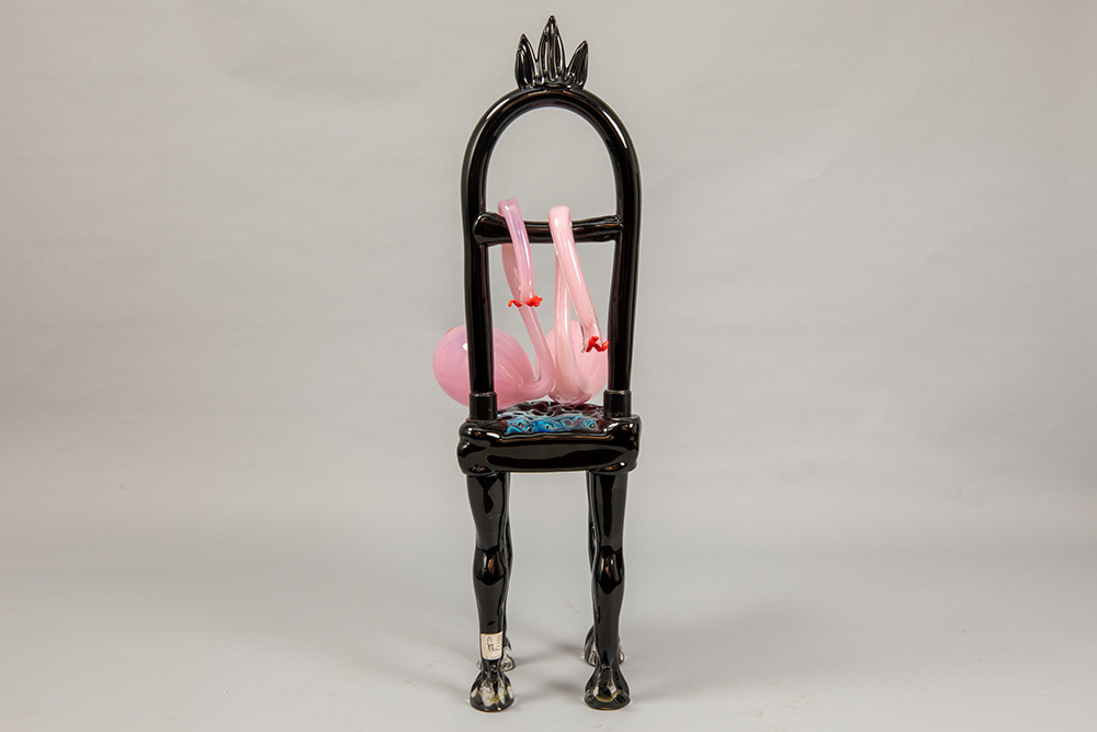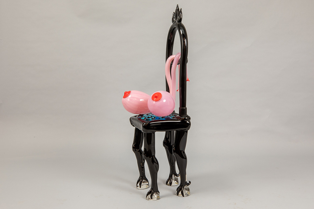 VAN ES HANNES (1950 – 2002) unieke sculptuur in glas getiteld “The Piece of Art I always wanted to make but never was allowed” – hoogte : 103,5 cm voorzien van een atelierzegel prov : door de tante van de huidige eigenaar rechtstreeks bij de kunstenaar gekocht