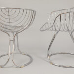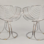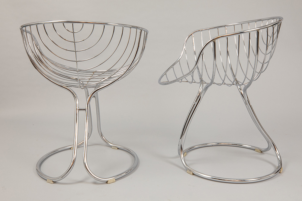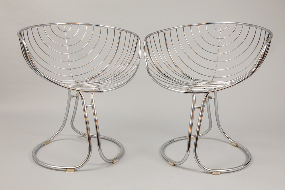 RINALDI GASTONE (1920 – 2006) set van zes zgn “Pan Am chairs” in gechromeerd metaal – 73 x 63 x 50 cm met lederen kussen in te restaureren staat