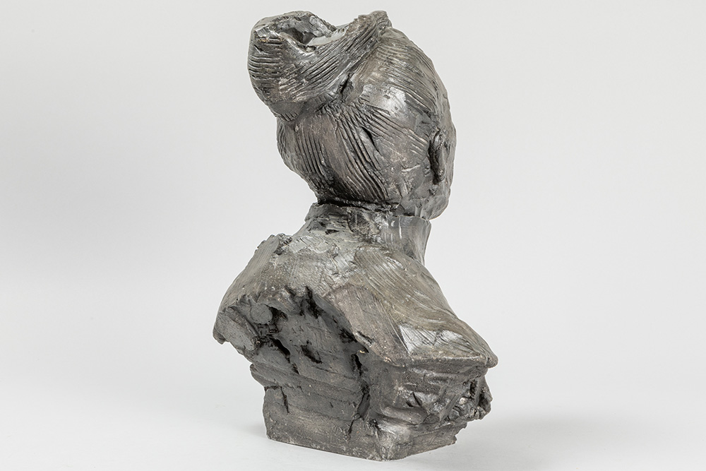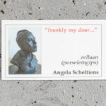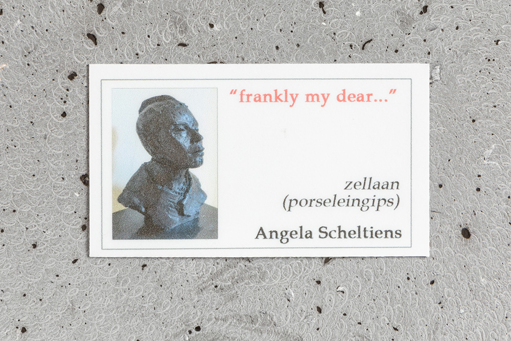 SCHELTIENS ANGELA sculptuur in porseleingips met een vrouwenbuste getiteld “Frankly my dear” – hoogte : 38 cm met onderaan een kaartje
