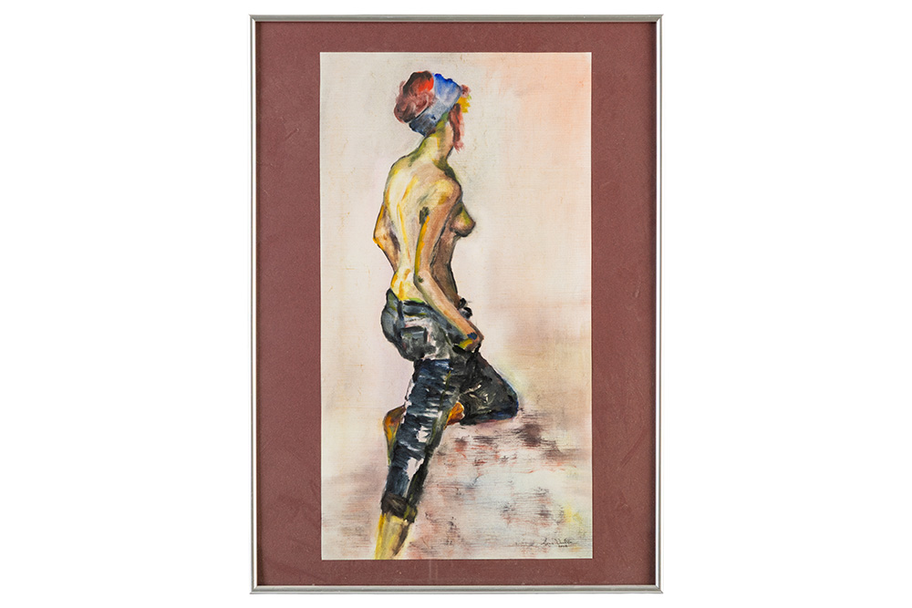 VERHOYE ANNIE (20° – 21° EEUW) (van de Academie van Mechelen) werk in gemengde techniek op papier : “Model” – 62 x 33 getekend en gedateerd 2008