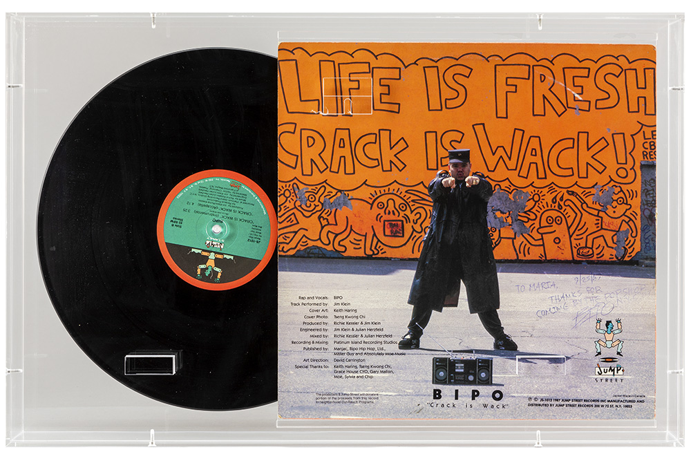 LP cover designed and double signed by Haring and Bipo for “Bipo – Crack Is Wack” dd 1987 sold together with the vinyl
